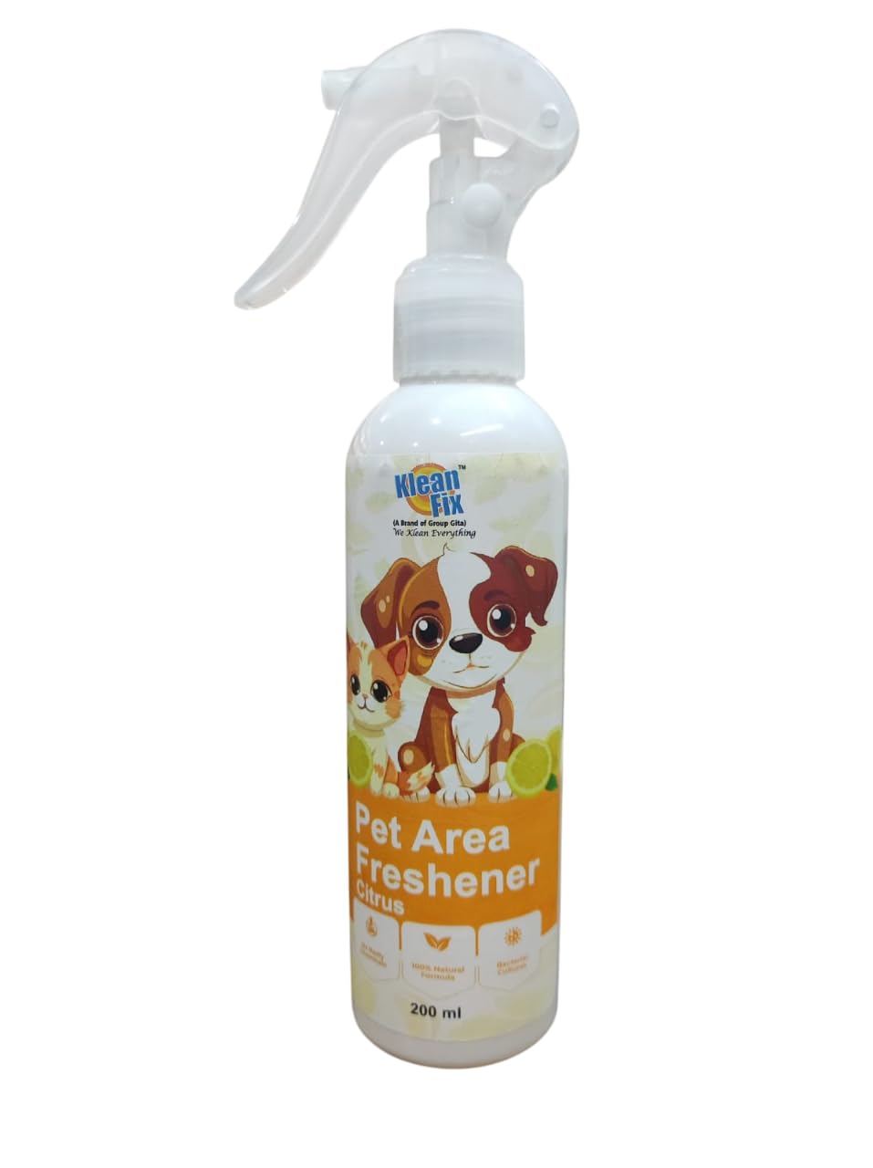 PET AREA FRESHENER is a pet-safe deodorizer designed to eliminate unpleasant odors and refresh pet spaces.